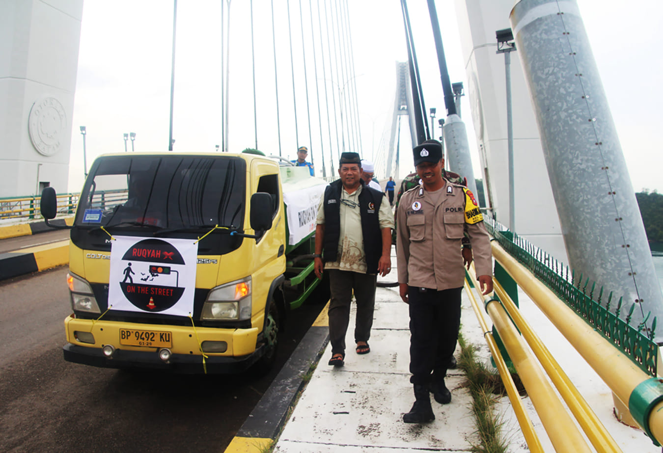 Ruqyah dilakukan secara massal dengan menyiramkan 5.000 liter air ruqyah menggunakan truk tangki di sepanjang Jembatan Barelang.